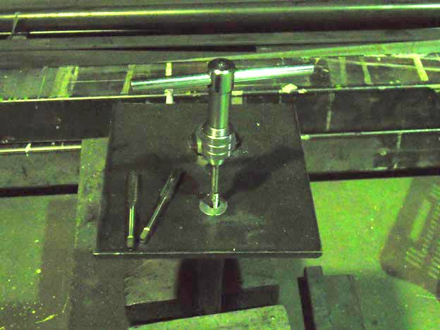 シャフトのセンターにM8のタップをたてるため、下穴を開けます。