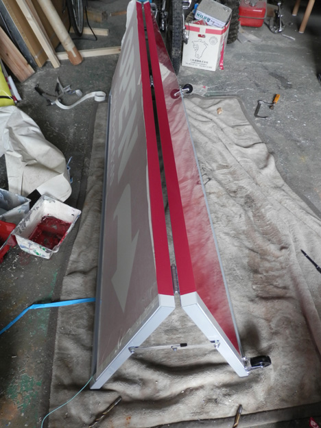 スチール枠のもので、表示サイズが縦500*横1800、脚100という、珍しい横長タイプ。