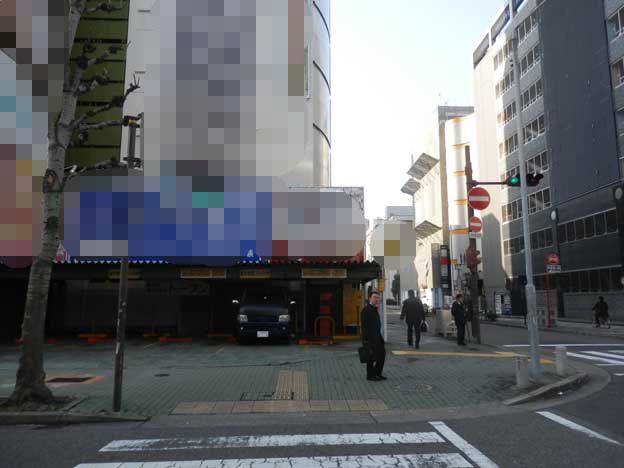 いつものモザイクだらけの現場へ、看板の表示変更に。