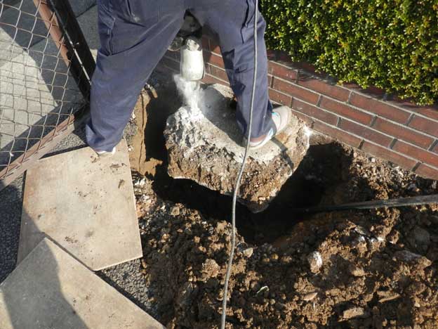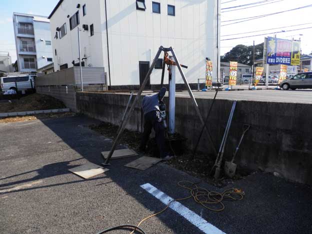 植え込みの中に地上塔を設置するのですが、あたり一面ドロドロっス。