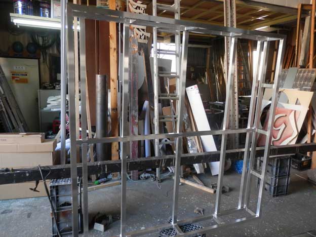 現場への搬入、取り付けのことを考えて、アルミで製作することにしました。