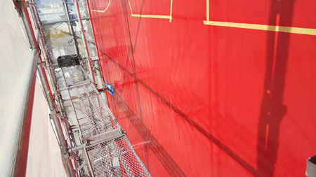 数箇所に分かれた現場の分を合計すると100㎡とかという事はありますが、1箇所でこの面積は、弊社では久しぶりです。しかも屋上広告板ではありません。