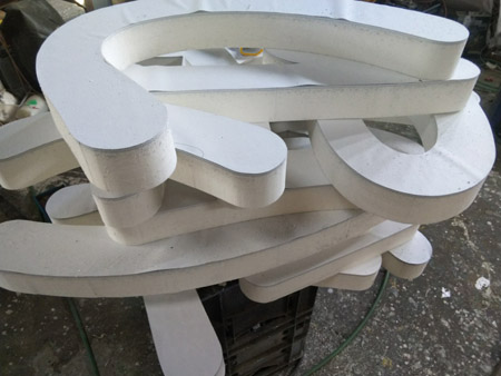 あと、一昔前は、文字の厚み部分はバックの色と同色に塗装するケースが多かったのですが、最近は文字の正面と同じ色に塗装することのほうが多いですね。デザイン的にそのほうが好まれるようになってきたようです。