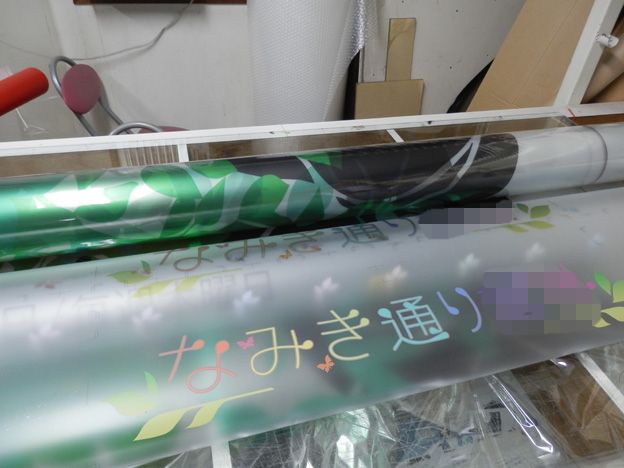 フレーム無しの看板は、取り付けるのに穴の数が多くなってしまうのが欠点ですね。