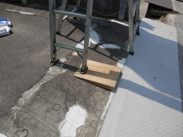 ハシゴの設置位置はかなり傾斜しておりますので、足元にはこんな工夫をしております。