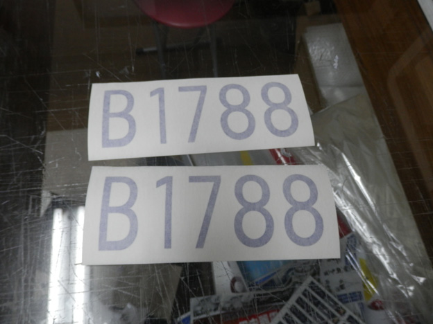 板金修理に入った車に社内の管理番号が貼られており、修理(リアゲート交換)すると文字が無くなってしまうため、文字を製作します。