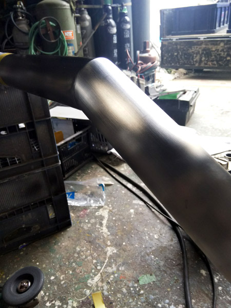 60.5Φのステンレス丸パイプを30°の「へ」の字に加工しました。