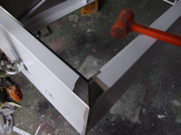 溶接して、サンダーで表面を整えてからヘアライン研磨します。
