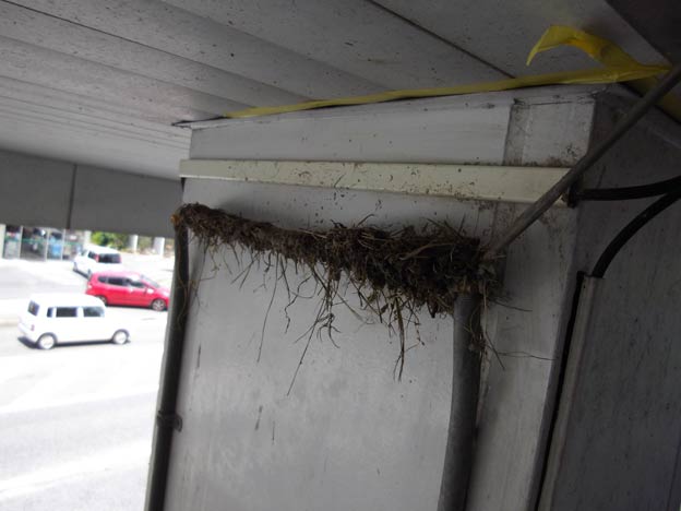 ここのガソリンスタンドには、随分昔からツバメが棲みついているそうで、この他にもいくつも巣がありました。
