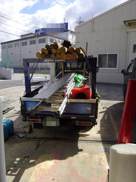 隣地駐車場をお借りしての作業です。9時半がタイムリミット。