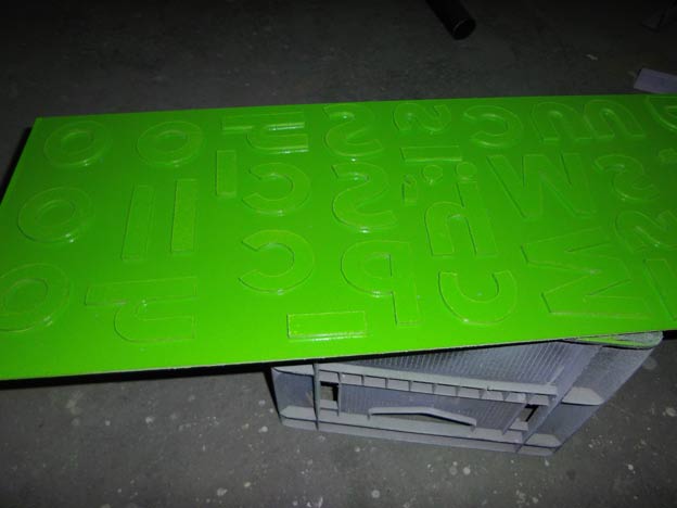 アルミ複合板の切文字にも塗装。