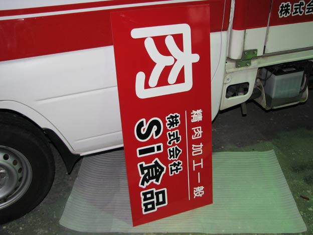 ここでまた別のお客様(先日看板を取り付けた肉屋さん)から電話があり、冷凍車に看板を入れて下さいとのご依頼。こちらも以前からお約束していたのですが、期日が近いのにもうすでに昼間は予定が全て埋まっています。