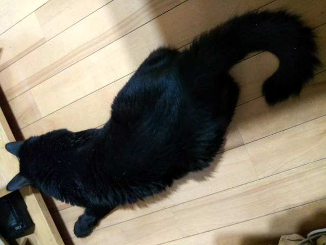 以前飼っていたキジトラネコさんは去年の6月に天国に行ってしまいまして、今はチョイ長毛の黒猫も一緒に暮らしています。