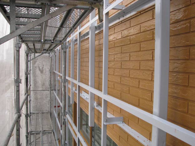 看板サイズは4000*7500と、それほど大きくないんですが、建物に有効な下地がほとんど無いので、取り付けが大変です。