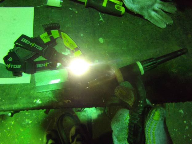 このヘッドライト(作業時に額に付けて使う懐中電灯)、TIGのマイクロスイッチをONにすると点灯します。