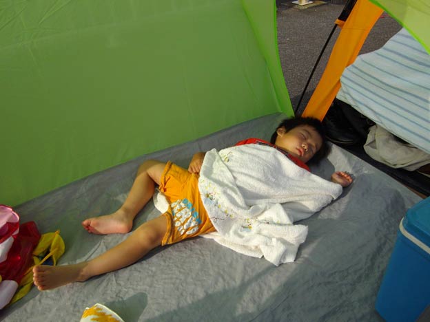 子供たちがプールから帰ってきたら、コースの対面(1~2コーナー、S字、逆バンクあたり)に行こうと思っていたのに、3人とも爆睡です。