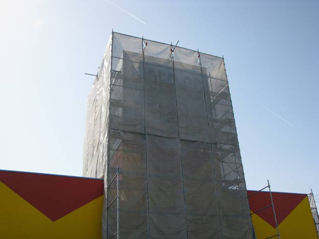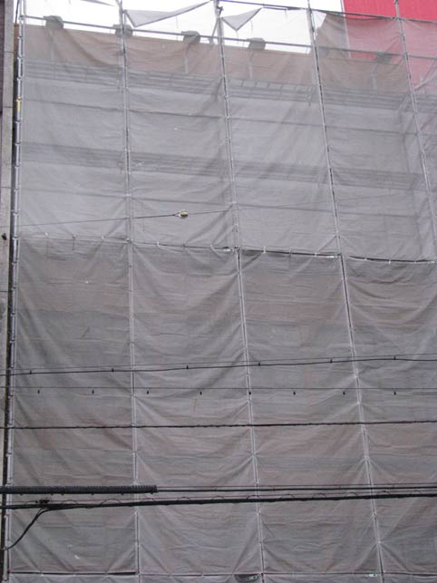土曜日に足場を組んだので、本日日曜日に既設看板の撤去から開始。