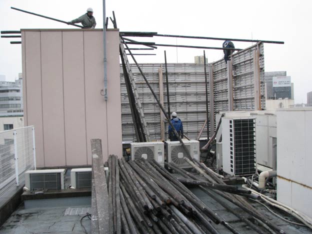一部が吊り足場になるので、さすがに自分達で組む気にはなれません。