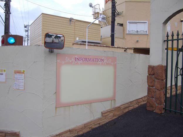 外構工事前に設置した写真ですので、看板足元が仕上がっておりませんが、この後タイル仕上げのスロープになりました。