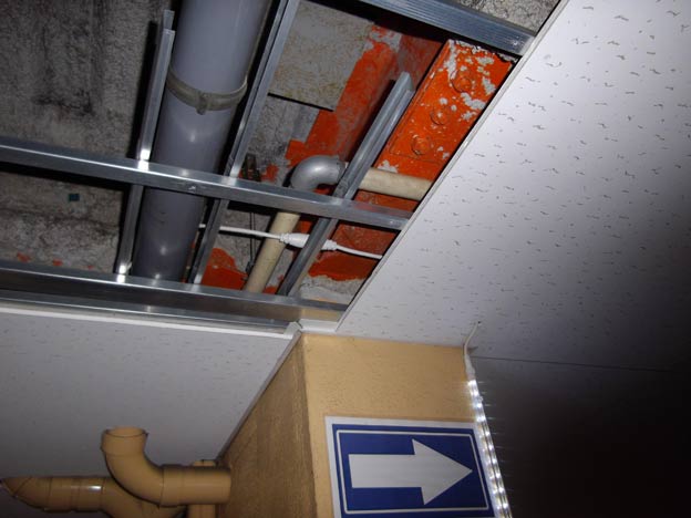 全てジプトーン(吉野石膏の天井用ボードの商品名で、最も一般的な天井用ボード・・・そう、あの虫食い模様のヤツです)を外して配線してました。