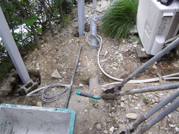Nさんに室内(エアコンが効いてますw)の電源工事を頼み、私は外でセメント練り。マジで死にそうになりました(笑)。