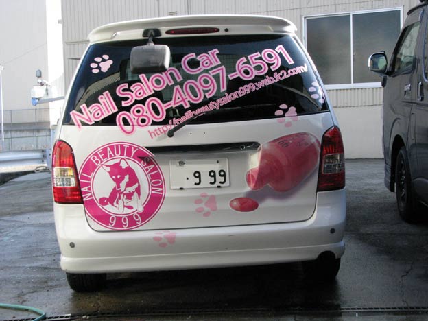 有名なネイリストさんの出張ネイルサロンとして使用する車に、マーキングをして下さいとのご依頼です。