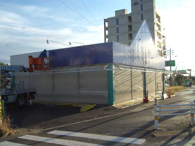 お店の定休日に外壁を重ね張りし、一気に塗装しました。