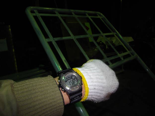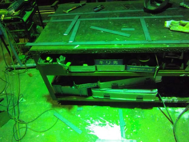 完全に真夜中の作業です。納期と自分のスケジュールを考えると、この日に組み上げて1回目の塗装をしておかないと間に合わないのです。
