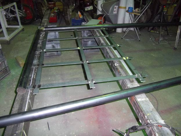 アルミ複合板の補強に、6tのフラットバーを組みます。