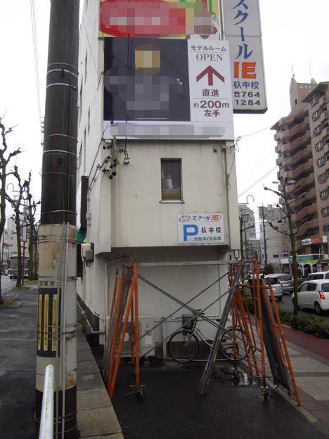 もう一つ、ビルの集合看板にもシート貼り。