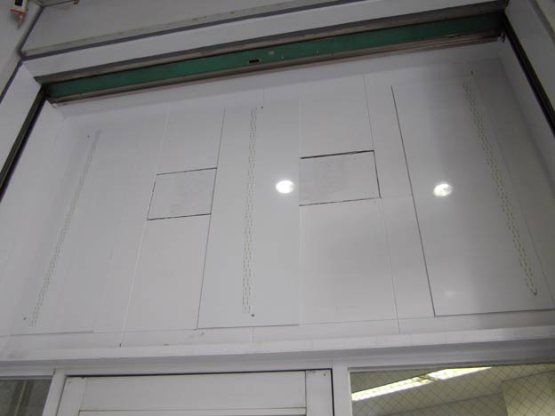 先日、夜間工事でビルの袖看板の表示消去作業をしました。