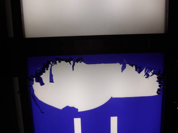 弊社では、インクジェット看板の意匠変更の場合は、極力旧表示を剥がしています。