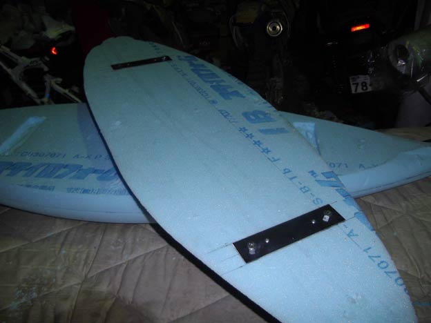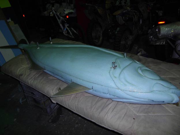 普通のポリエステル樹脂だとスタイロフォームが溶けてしまうので、スチロール用の樹脂を塗布してコーティングした後、普通の樹脂で積層しました。