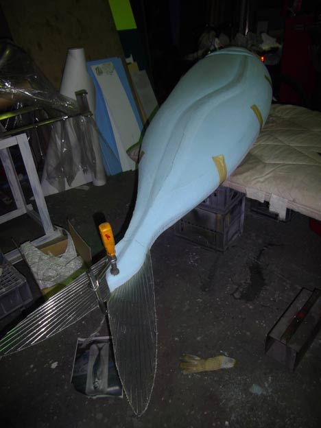 スタイロフォームを貼り合わせて、各ヒレを接着固定。