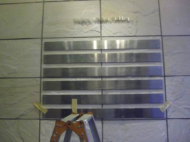 もう一つ、壁面にステンレスの箱文字を取り付け。