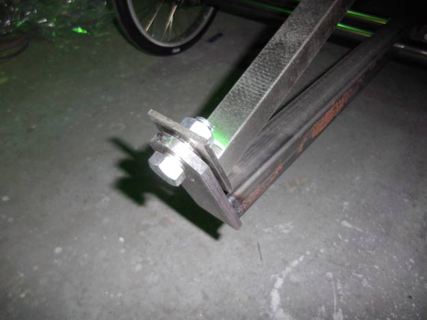 ステアリングのピボットは、手抜きで単なるM16のボルトナット。一応19.1φの1.2tの丸パイプを切っただけのブッシュを通しています。