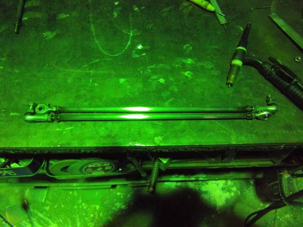 ステンレスの10φのパイプの両端にナットを溶接し(当然片側は逆ネジ)、ロッドエンドとリンクボールを取り付けました。