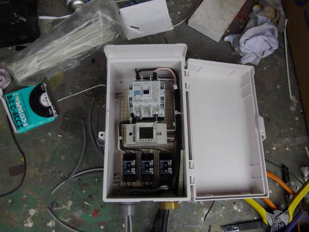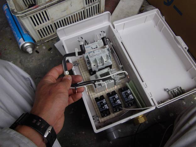 プラBOXは特に品番は指定せず、「余裕をもって入る大きさ」と電材屋さんにおまかせしたのですが・・・キツキツですやん、○愛さん(爆)。