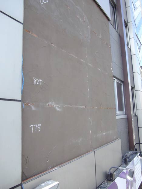 10mm程度の目地巾であれば何とかなるのですが、今回は壁面パネルが台形的に狂って取り付けられていた事もあり、最大で25mm程度の目地巾があります