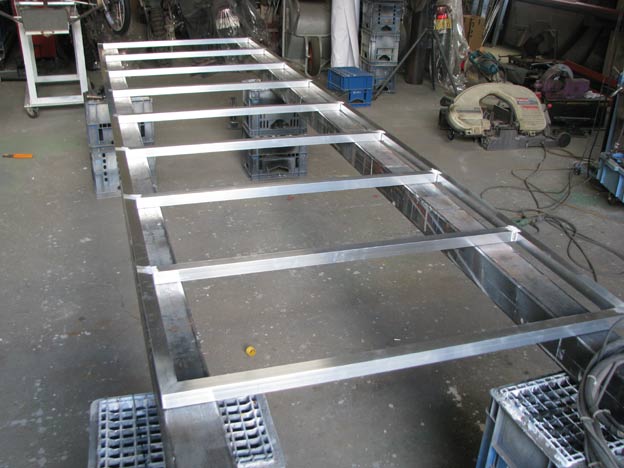 予め設計したとおりにモジュールが収まるかどうかを確認して、同時にスタッドボルトの位置も決めていきました。