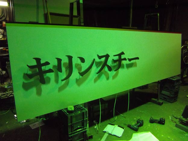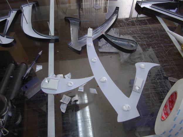 バックライト文字の場合、多くは文字を現場の壁に直接取り付けるのですが、今回は諸々の事情で、ベースとなる看板パネルに文字を取り付けます。