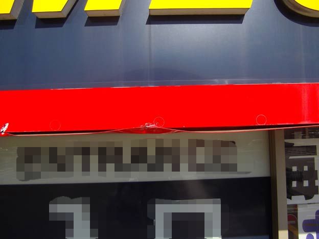 ちょっと遠い現場で、看板の保険修理。入口上の看板に、搬入車がぶつけてしまったのだそうです。