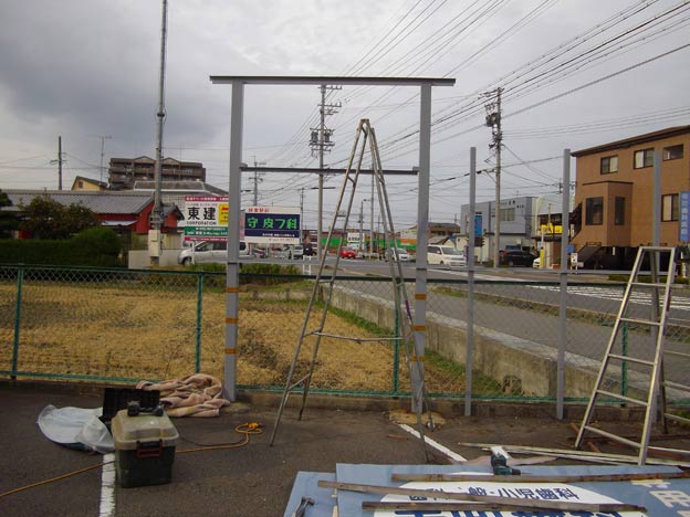 新規はアルミ枠です。既設の支柱の基礎量などが不明なので鉄枠を避け、アルミ枠となりました。