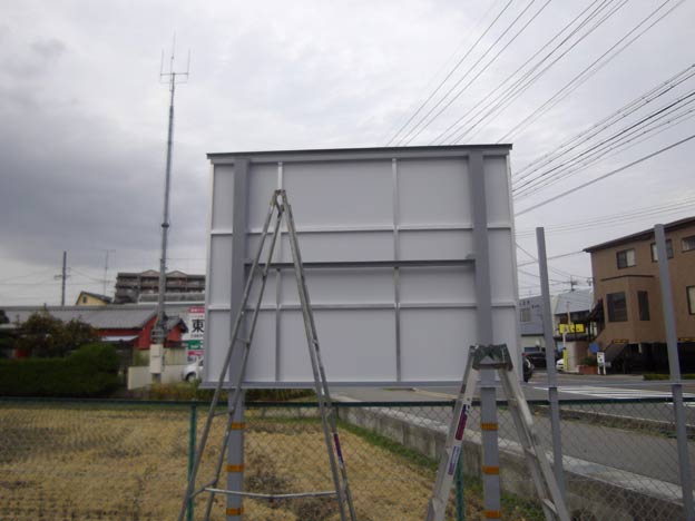 壁面看板は開閉式のFFなので、フロント枠のみ取り外して地上でFFの張り替え。