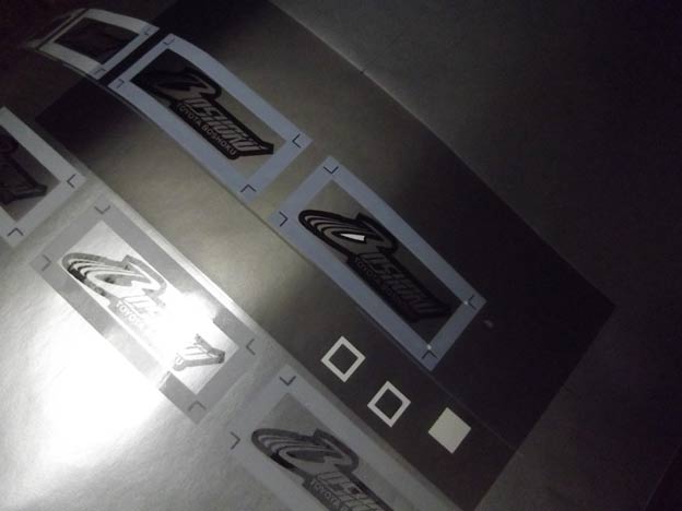 色の濃いフィルムに印刷して、周囲をマシンカット。