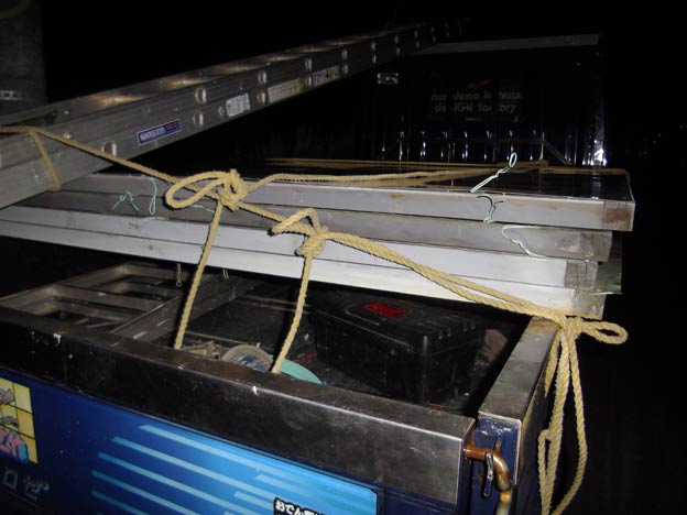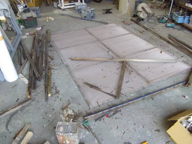 受けのアングルは、何故か100角パイプに何本もビスを打って固定してありました。
