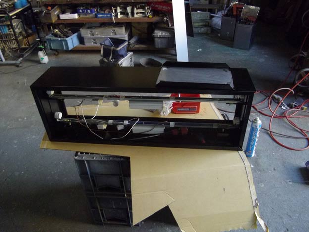 粉体塗装から上がってきたので、内部照明を組み付けました。中身まで黒く塗ってしまってありますが、まあ両面式なので大丈夫でしょう。