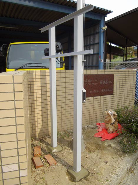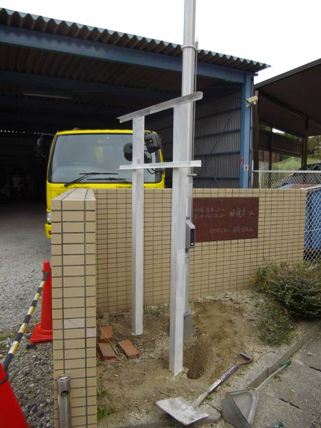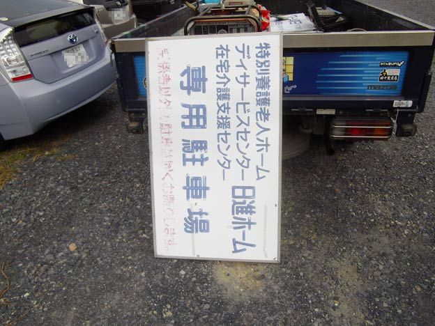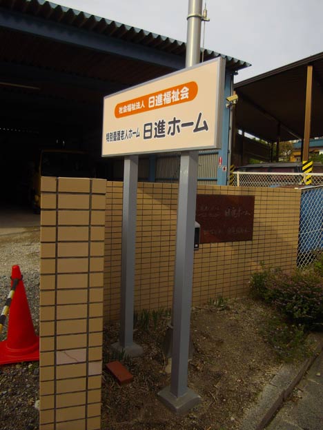 先日準備作業をしておいた老人ホーム様で、新規の看板の設置作業です。