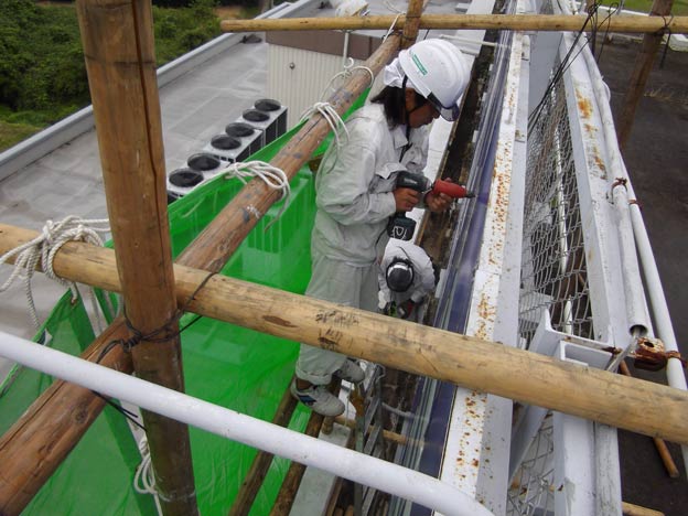確か既設は7年ほど前の施工で、この状態で耐えてきたわけですので、SUSリベットであれば当分は大丈夫だろうという判断です。