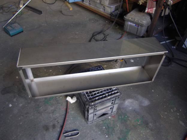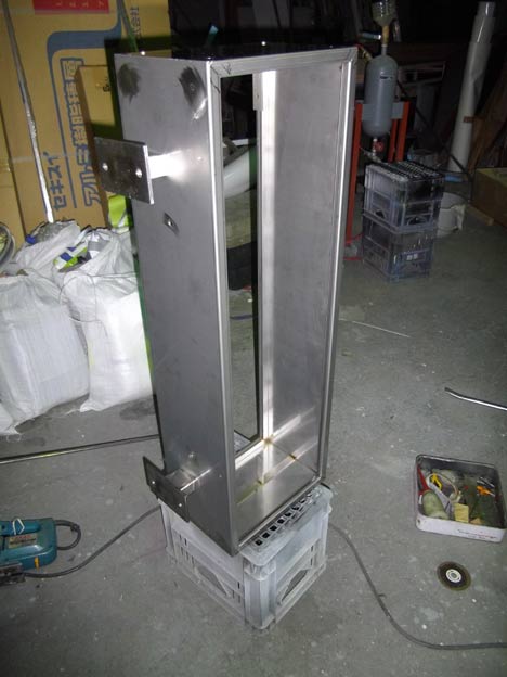 外装もステンレスの2Bです。取り付けブラケットは在庫の5tのフラットバーと角パイプ。